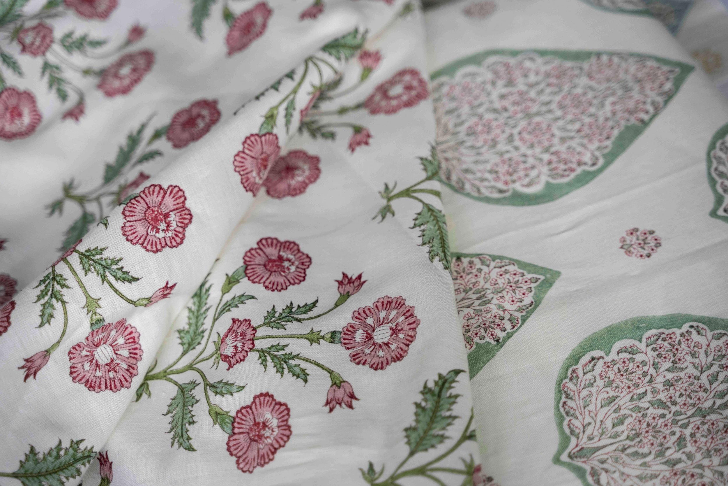Pukka Print’s exquisite hand block printed linens are a perfect pairing with the timeless design of Anbôise upholstered furniture.
