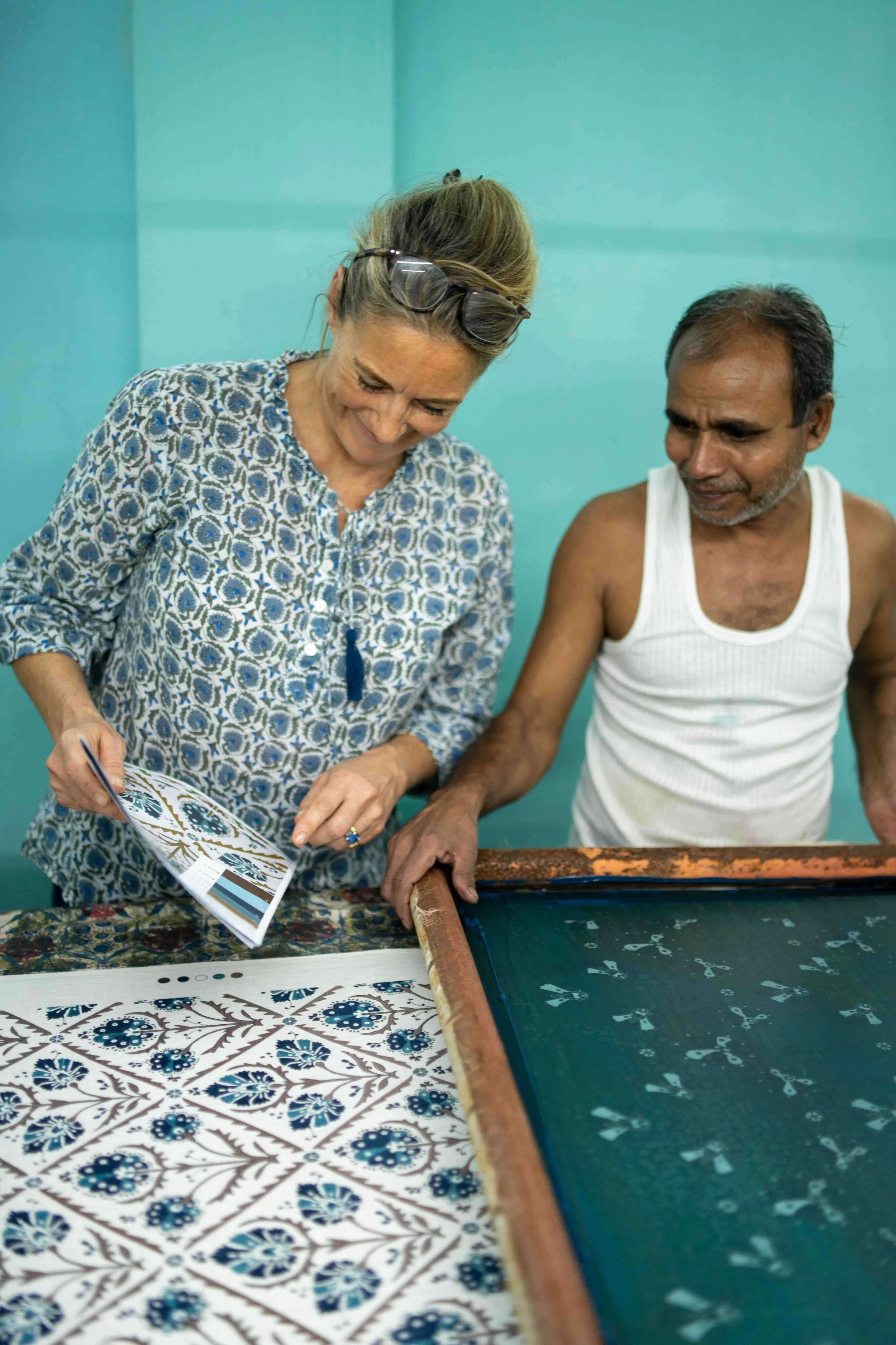 “I have always loved the joy of suzani - their playful motifs, cheerful colours and uplifting spirit,” says Jools. “They have a perfect, imperfect irregularity to them, embroidered patterns stitched by hand giving them real character that I find really comforting. It’s the interpretations of floral forms that I find so original and informal - the complete opposite of a botanical, life-like painting. It’s this disregard for formality but the appreciation and nod to pattern rhythms that really enticed me. I immediately recognised the potential for placing our next collection in the heart of the Samarkand exhibition - I felt the recurring motifs could translate well into block printing, Pukka’s usual mode, and so this got me wanting to experiment with patterns and colour combinations to see how I could make them relevant for contemporary interiors.”